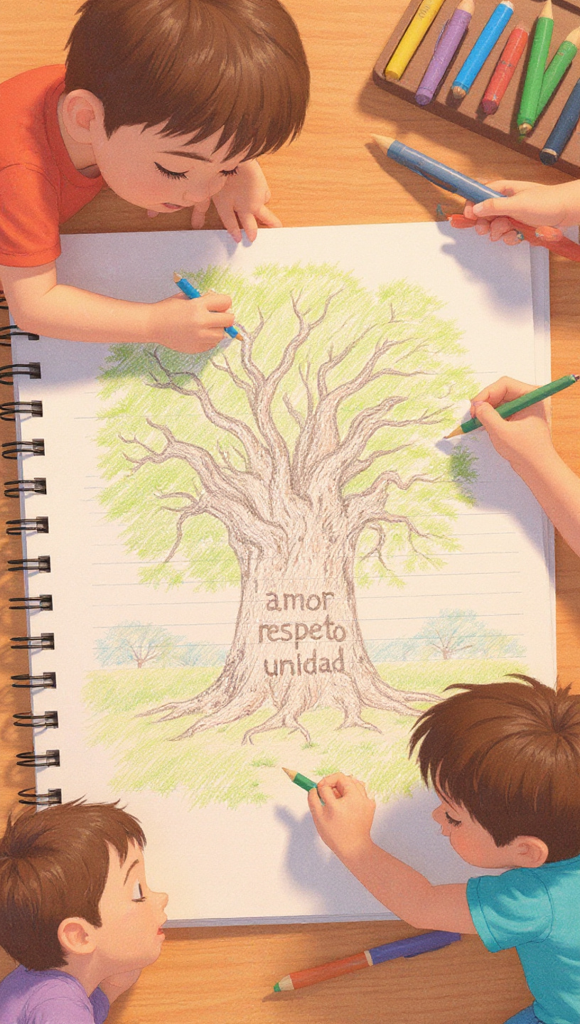 - Presentación: Al terminar, cada estudiante compartirá su árbol de valores con la clase, explicando lo que escribieron.