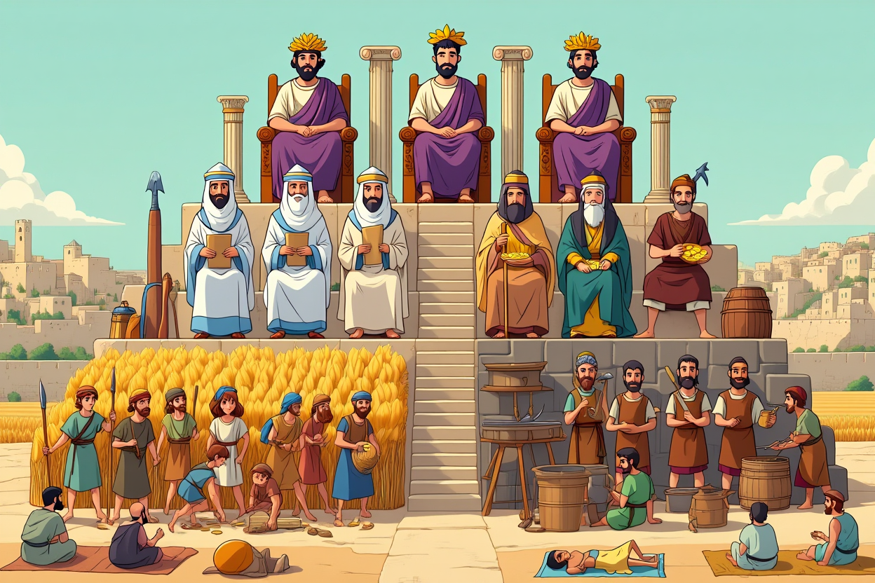La realidad de un mundo dividido. ¡Hola a todos! En este nuevo periodo, vamos a sumergirnos en la historia para descubrir en qué tipo de sociedad vivió Jesús. A menudo pensamos en los personajes bíblicos como figuras lejanas, pero ellos vivieron en un mundo real, con problemas y divisiones muy parecidas a las que vemos hoy en día. La sociedad de la Judea del siglo I era compleja y estaba marcada por profundas desigualdades sociales y económicas. Había una gran brecha entre los que tenían el poder y la riqueza, y aquellos que vivían en la pobreza y la marginación.